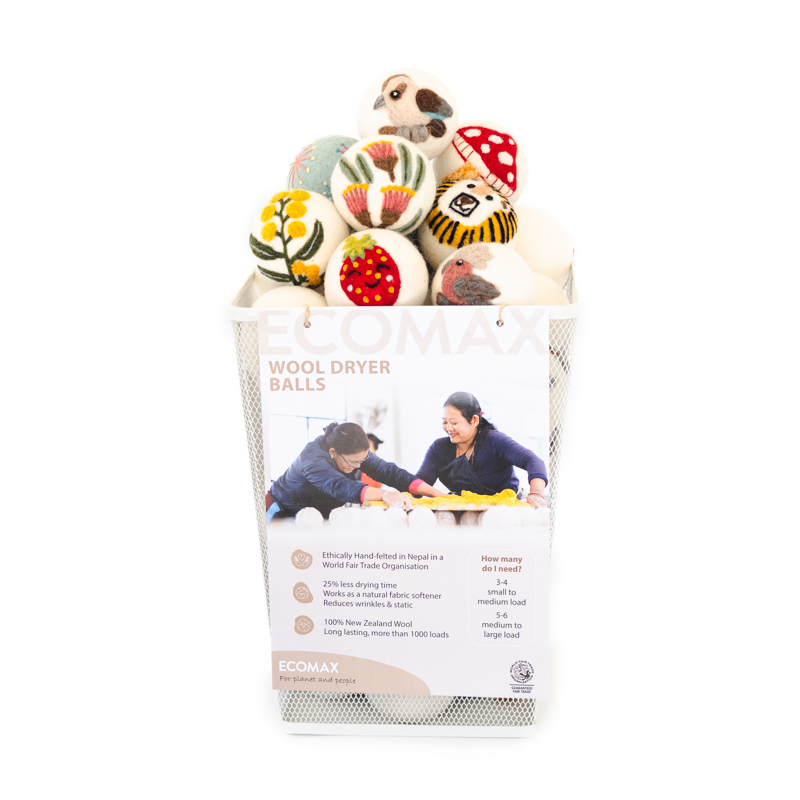 The women who make this wool dryer ball all work at a WFTO work place where they are paid a fair wage which allows them to look after their family and be a valued member of their community. A work place that treats them with dignity and respect and provides a safe and happy work environment. A space that allows the women all the freedoms we value in our workplace, such as the right to join a union, to associate with whoever they wish to and not be prejudiced against for our colour, tribe or sex.